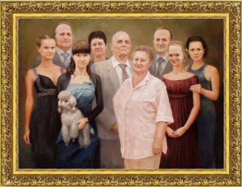Одним из таких презентов является портрет семьи в ажурной позолоченной раме от нашей багетной мастерской. Вы скажете, его написание – невыполнимая задача, ведь собрать воедино всех членов семьи для долгого позирования художнику очень сложно. Художнику Мастерской Художник это вовсе и не нужно, ведь портрет семьи он может написать с общей фотографии. Представьте, как неожиданно, приятно будет получить родителям такой душевный, изысканный, необычный подарок, с которого ежедневно на них будут смотреть самые дорогие, любимые люди. Красочный портрет, на котором предстанут сразу несколько поколений, может стать для родителей настоящей семейной гордостью, его можно оставить в наследство своим потомкам, которые спустя годы, несомненно, оценят предоставленную им возможность собственными глазами видеть своих прародителей, рассказывать о них уже собственным детям.