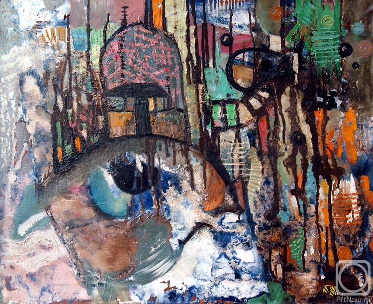 Центральным элементом изображения является стилизованный глаз, напоминающий одновременно и всевидящее око, и космический объект. Глаз и путь представлены как совокупность ярких, переливающихся цветов и текстур, создающих ощущение глубины и бесконечности.